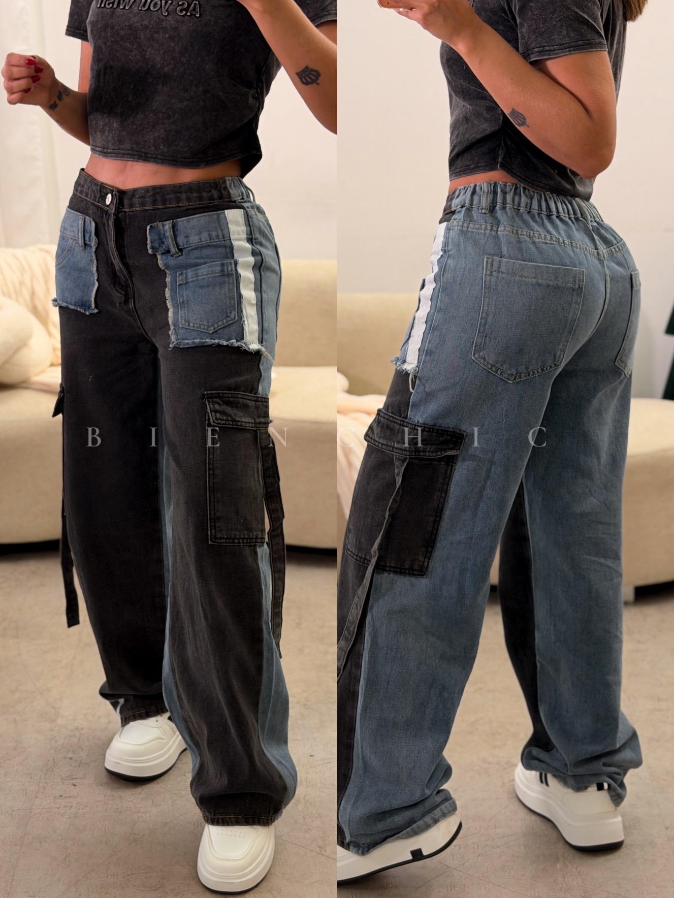 - Color: Negro cenizo y Beige prelavado